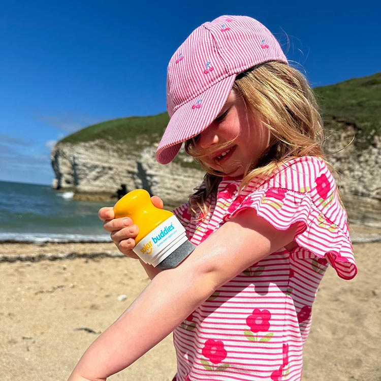 Solar Buddies blev grundlagt af Kelli Aspland og Laura Waters for at gøre solbeskyttelse nemt og sjovt for børn. Den genanvendelige applikator er fremstillet af 94 % genanvendt plast og minimerer emballageaffald. Mærket har fået international opmærksomhed, blandt andet gennem et succesfuldt optræden i tv-programmet Dragons' Den.Specifikationer