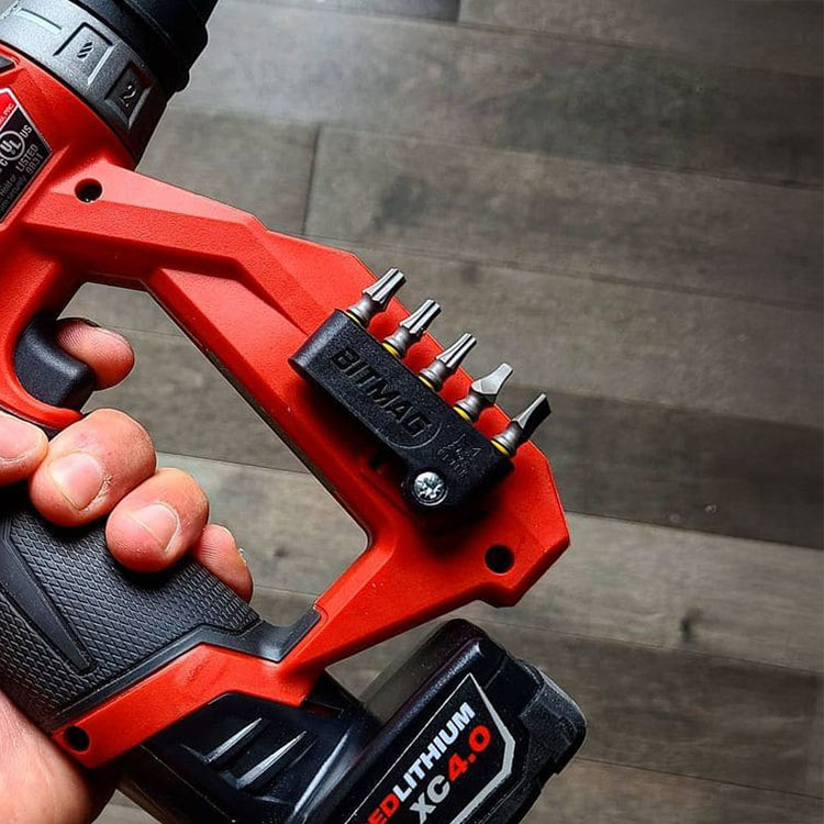 Bitmag er en let, stærk og smart bitsholder for dig, der ønsker hurtig adgang til dine bits direkte på værktøjet. Fremstillet af glasfiberforstærket komposit og udstyret med kraftfulde magneter, der holder op til 5 bits og adaptere sikkert på plads – selv når værktøjet bruges i skrå positioner. Bitmag passer til de fleste elværktøjer og fastgøres nemt med skrue, lim eller tape.