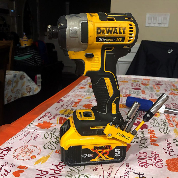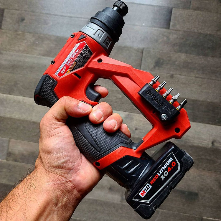Bitsholderen Bitmag er kompakt og lavprofileret, hvilket betyder, at den ikke forstyrrer dit greb eller påvirker værktøjets balance. Det diskrete design gør, at holderen sidder tæt ind til værktøjet uden at være i vejen. Du kan skifte bits hurtigt og smidigt med en hånd, selv med handsker på, hvilket gør arbejdet mere effektivt og reducerer unødige afbrydelser.Universal bitsholder til elværktøj