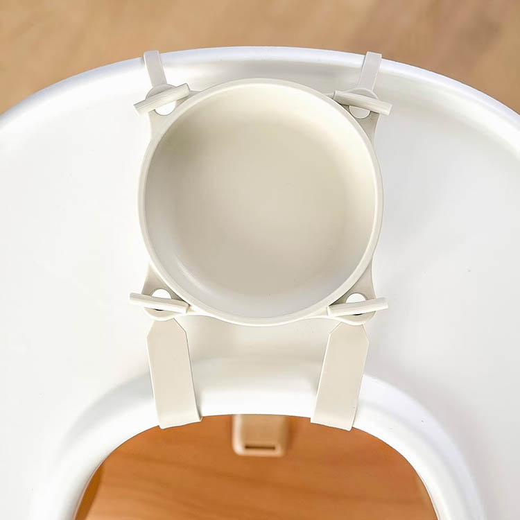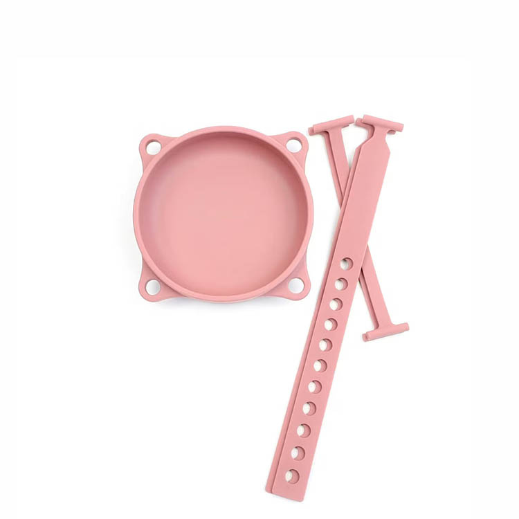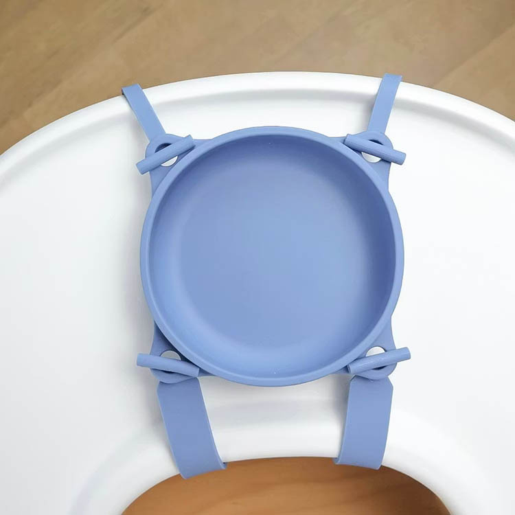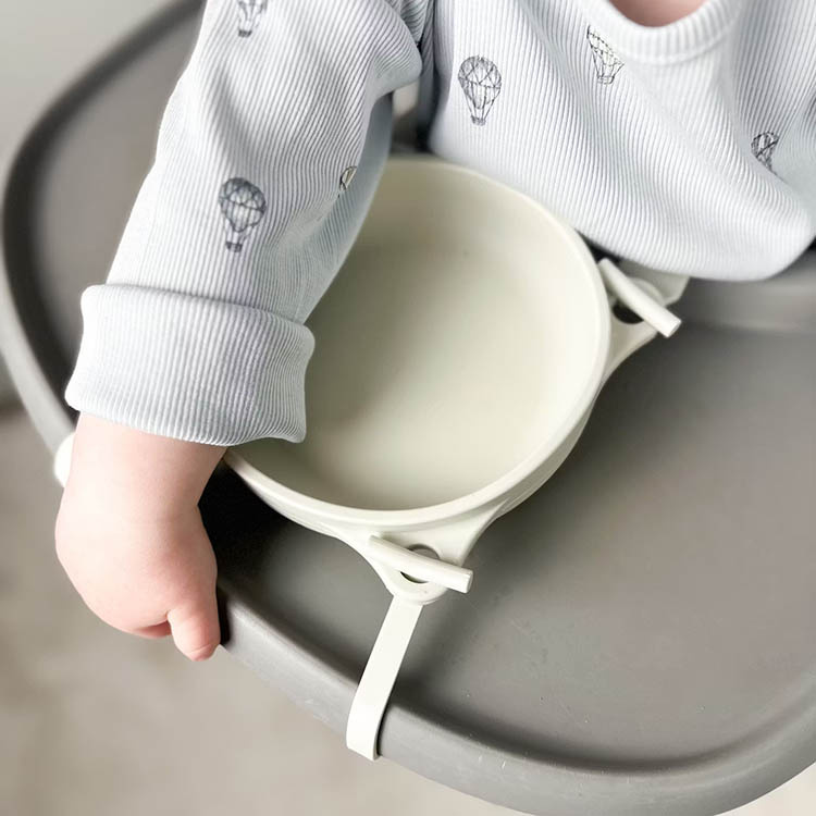 Børneskålen er udstyret med en kraftig sugekop i bunden, som hjælper med at holde skålen stabilt på plads. Sammen med de fire fastgørelsesanordninger og de medfølgende bånd får skålen ekstra stabilitet under måltidet. Kombinationen sikrer, at skålen sidder sikkert fast og ikke kan løftes væk af barnet.Perfekt til børn, der lærer at spise selv