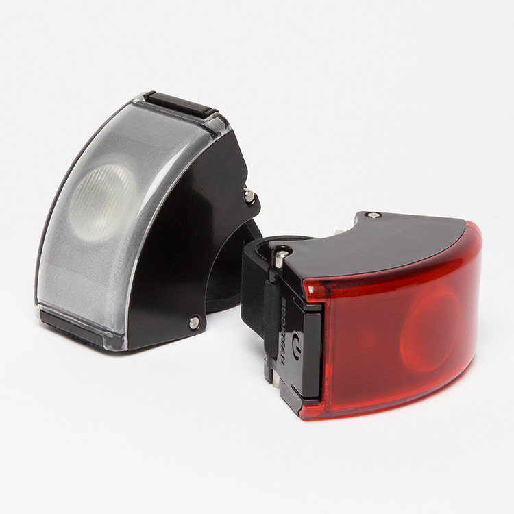 Forlygten passer til alle styr med en diameter mellem 22 mm - 42 mm og oplyser vejen med hvidt lys i 100 lumen. Baglygten fastgøres mest bekvemt til stellet eller under cykelsadlen og passer til cykelstel mellem 22 mm - 32 mm i diameter. Baglygten lyser rødt i 37 lumen.