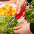 Har du lidt svagere hænder, er denne saks et glimrende værktøj, da din tommelfinger ikke skal bruges. Den elastiske rem, der løber mellem de to håndtag, er også med til at åbne saksen mellem clipsene, hvilket ellers kan være en svær bevægelse.