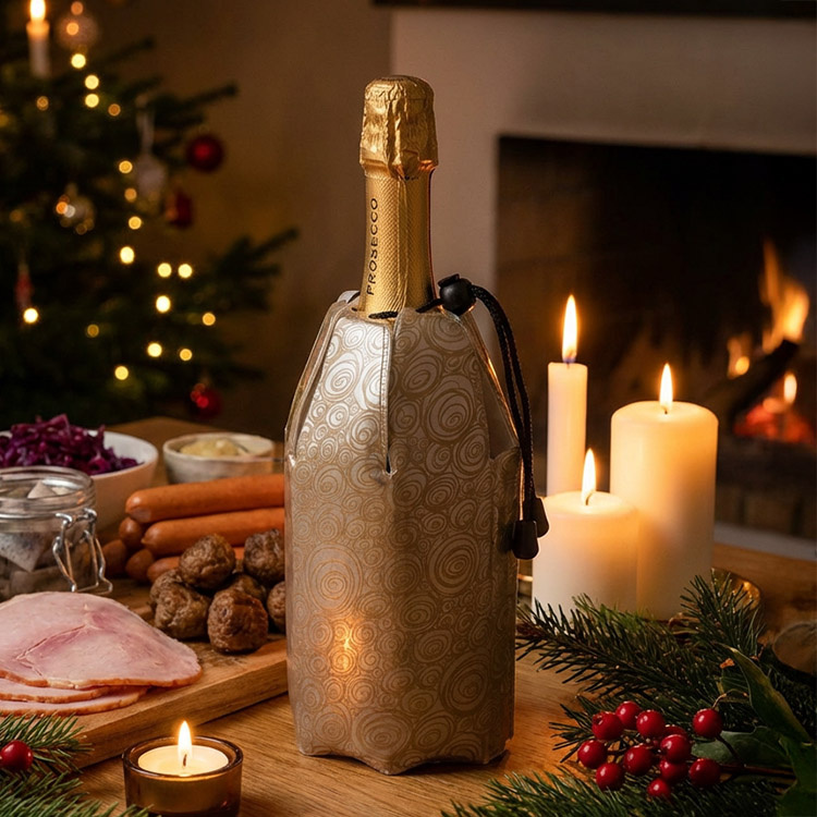 Med en genanvendelig flaskekøler kan du holde din vin kold på en picnic eller hurtigt afkøle den boblende vin, du har glemt at lægge i køleskabet. De effektive køleelementer er placeret rundt om hele flaskekøleren, og på ca. 15 minutter er drikkevarerne kølet ned til optimal serveringstemperatur.