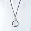 Halsremmen, som forstørrelsesglasset hænger på, er 53 cm lang, og med snoren kan du justere pasformen om halsen.