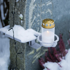 En almindelig udfordring med gravlys er at de kan blive usynlige under sne eller vælte i hård vind. Den her holder løser problemet ved at fæstne direkte i gravstenen. Lyset kommer op en smule og holdes dermed både stabilt og synligt – en tryg løsning året rundt.Nem montering