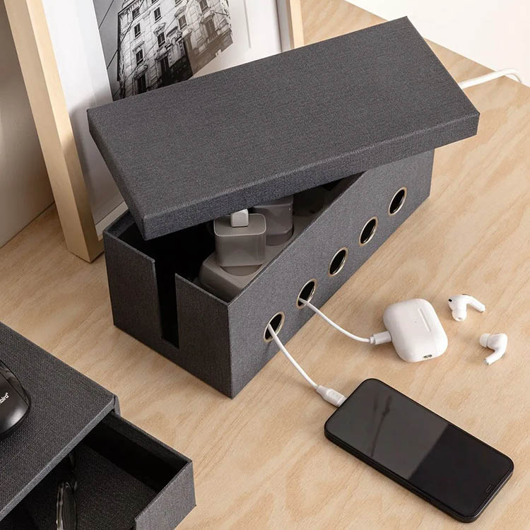 God ventilation er vigtig for at forhindre overophedning, især hvis du bruger opladere eller adaptere, der hurtigt bliver varme. Denne opbevaringsboks til ledninger er designet med flere åbninger, der giver luften mulighed for at cirkulere frit.Elegant og pladsbesparende design