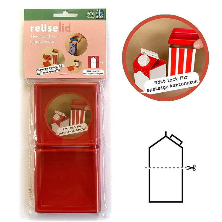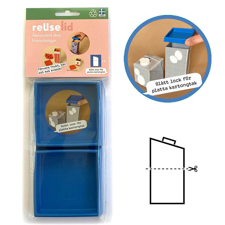 Forvandl din tomme mælk- eller juicekarton til en smart madbeholder med reUselid. Vask kartonen ud, når indholdet er slut, klip til den og klik på reUselid – så får du en tætsluttende opbevaringsbeholder. Låget tåler opvaskemaskine og passer til enliterspakker til eksempelvis mælk, juice og havredrik.