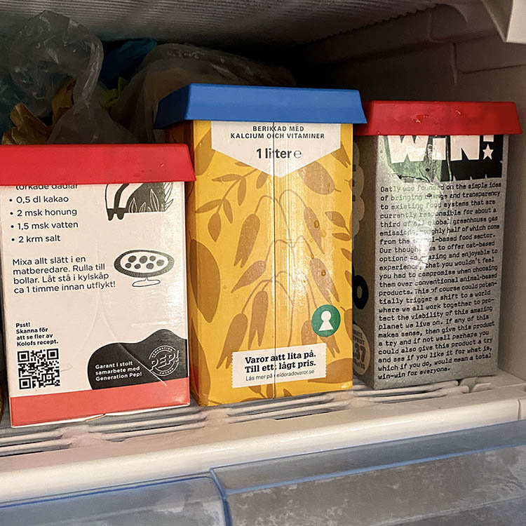 At genbruge en tom drikkekarton med reUselid er både praktisk og bæredygtigt. Kartonen, du allerede har, bliver på få sekunder en tæt madkasse, der er nem at stille ind i køleskabet eller skabet. De lige sider gør, at den tager minimalt med plads og let kan stables. Den tætte lukning hjælper desuden med at bevare friskheden længere. Låget er fremstillet af fødevaregodkendt og slidstærk plast, hvilket gør det sikkert i kontakt med mad og velegnet til langvarig genanvendelse.Sådan gør du