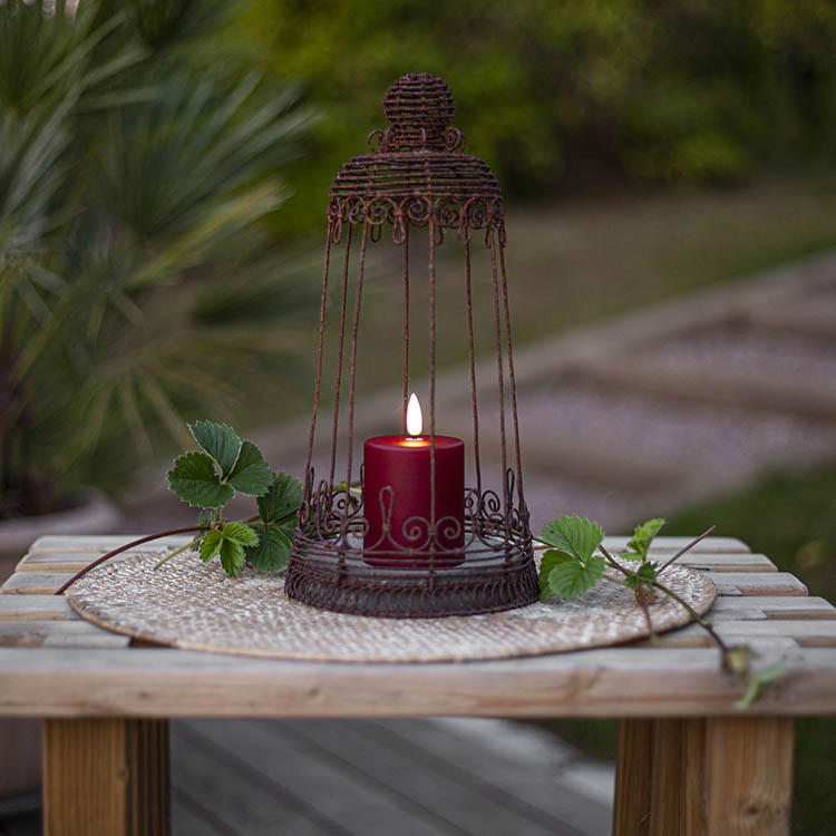 Med en højde på 10 cm og en bredde på lidt over 6 cm er batterilyset lille nok til at passe i de fleste lyslygter, men alligevel iøjnefaldende nok til at stå alene på et bord eller en hylde. Dets røde overflade og varm-hvide lys giver en behagelig og realistisk glød, der minder om levende lys.Til både udendørs og indendørs brug