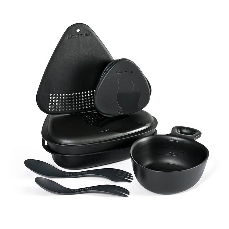 Svenske Light My Fire har udviklet et komplet måltidssæt i 7 dele, der er perfekt til at tage med på udflugter og vandreture. Uanset om du laver mad udendørs eller tager en madpakke med på picnic, har dette 7-delt måltidssæt nøje udvalgte funktioner, der gør det nemt og sjovt at lave mad eller spise på farten.