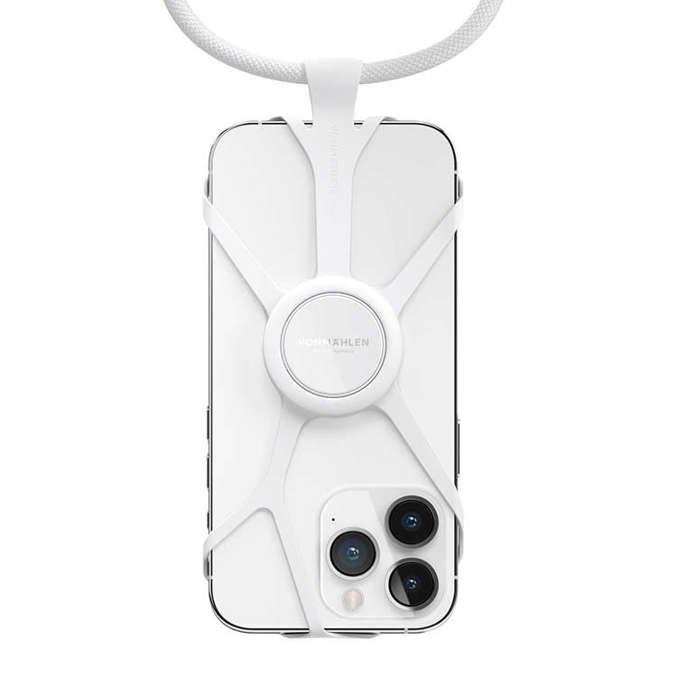 Mobilsnorens holder er fremstillet af et blødt og holdbart silikonemateriale med strækbart materiale. Den smart designede holder er ikke i vejen for kameraerne på bagsiden eller selfiekameraet på forsiden. Den blokerer heller ikke knapperne på siden og forstyrrer ikke touchscreen-funktionerne.