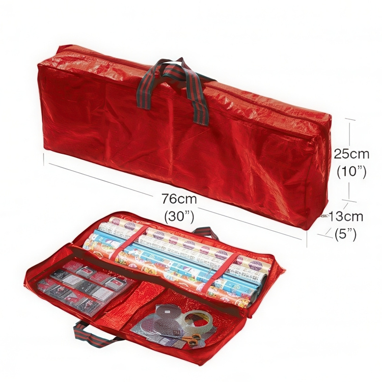 Smart opbevaringspose som gør det nemt at holde orden på gavepapir, snore, sløjfer og etiketter på et og samme sted. Med integrerede netlommer holdes små tilbehør organiserede og let tilgængelige, samtidig med at lynlåsen og bærehåndtaget gør posen både beskyttende og nem at håndtere.