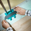 Når bladene har formet sig efter genstanden, låses de med håndtaget. Når bladene er låst, kan du hente profilskabelonen til arbejdsbordet, tegne profilen og skære efter skabelonen.