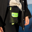 Redningskransen er nem at bære og kan også bæres på hoften med det praktiske taljehylster. Taljehylsteret er designet, så du stadig kan frigøre kransen, mens den er i hylsteret. Taljehylsteret har også en fløjte, der kan bruges til at signalere, hvis dette skulle blive nødvendigt.