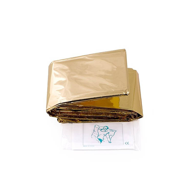 Redningstæppet er sølvfarvet på den ene side og guldfarvet på den anden.