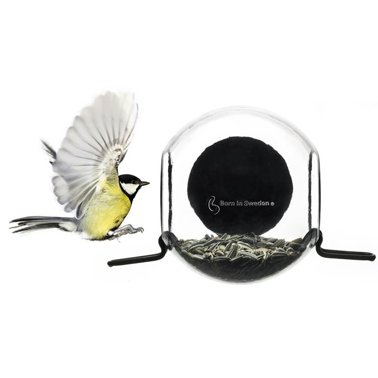 Innovativ fuglefoderautomat, som fastgøres med en kraftig sugekop direkte på ruden, så du kan se fuglene lande på siddepinden og tage fra – lige foran dig. Den åbne design med siddepind på begge sider gør, at fuglene nemt kan lande og spise fra forskellige retninger. Fuglefoderautomaten er både designet og fremstillet i Sverige med fokus på kvalitet og nøje udvalgte materialer.