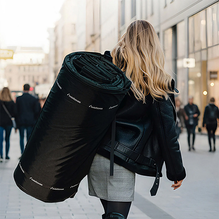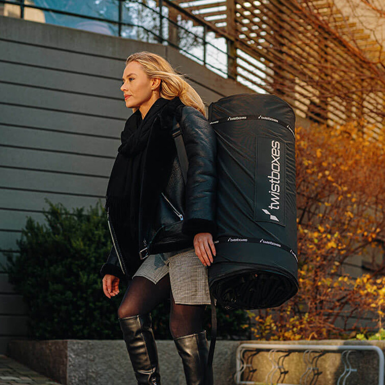 Når Twistboxes ikke anvendes, rulles den let sammen til 81 × 30 cm. Det gør opbevaring nem og fleksibel – hjemme, i bagagerummet eller i depotet – uden at den optager unødig plads.Nem at håndtere – også på egen hånd