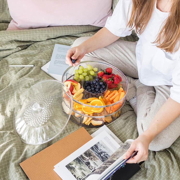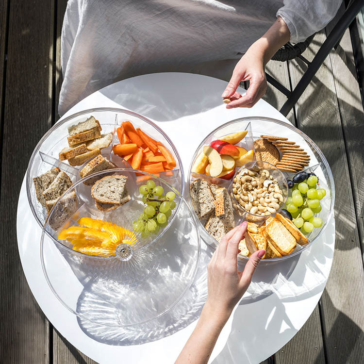 Smart serveringsfad som kombinerer praktisk funktion og stilren design. Med flere separate fag, et gennemsigtigt låg og smidig drejefunktion får du en gennemtænkt og alsidig serveringsløsning for alle lejligheder.