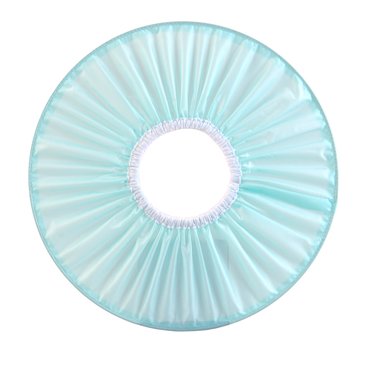 Det elastiske bånd inde i shampoo-ringen sikrer, at shampoo-overtrækket sidder behageligt og giver en god pasform omkring alle hoveder, uanset størrelse. Den stive yderkant holder skærmen oppe og sørger for, at vandet løber væk fra ansigtet.