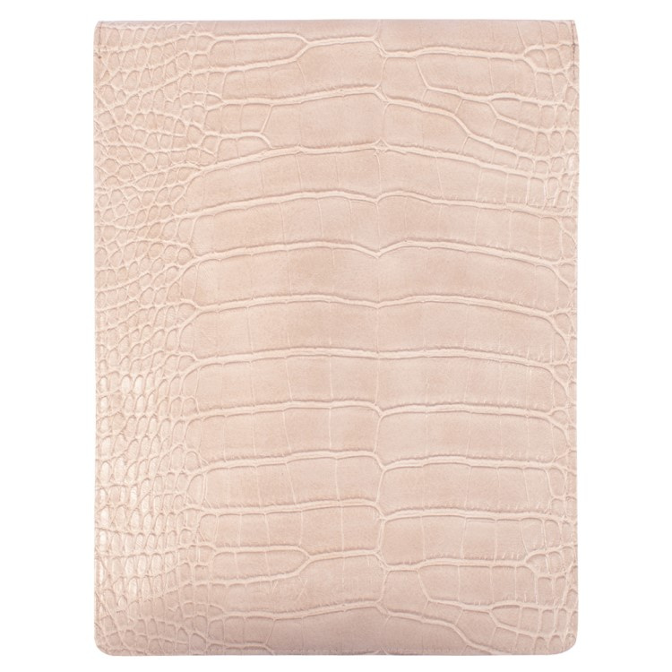 iPad-posen er fremstillet i eksklusivt vegansk læder og fås i sort eller i en lyserød farve med et krokodille-inspireret mønster.