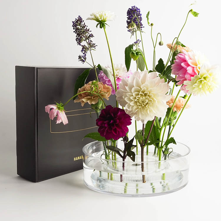 Cylinderformet vase i akryl fra Hanataba kombinerer glasets æstetik med akrylens holdbarhed. Den stilrene, lave design i krystalklar akryl er fremstillet for at fremhæve hver blomst på en naturlig måde. Med robust kvalitet og stabil form er den fuldt kompatibel med Hanatabas blomsterfakirer og skaber en pålidelig grund for kreative blomsterarrangementer. OBS! blomsterfakir er ikke inkluderet.