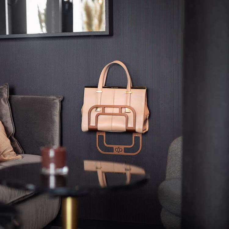 - Elegant opbevaring som fremhæver tasken som indretningsdetalje