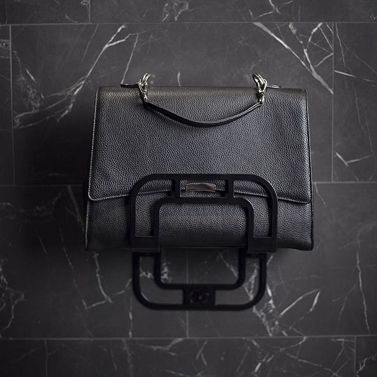 Med taskeholderen får tasken, som tidligere har ligget gemt, en åbenlys plads – synlig, tilgængelig og pænt eksponeret. Den kompakte men stabile design gør, at holderen passer i både smalle gange og walk-in-closets. Udover sin praktiske funktion fungerer den også som en dekorativ detalje, der giver rummet et mere gennemtænkt og personligt udtryk.Svensk design og produktion