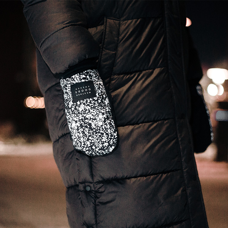 Handskerne fås i to størrelser, og den reflekterende overside fås i flere forskellige former for reflekterende print. Modellerne "Dråber" og "Prikker" er også vandtætte.